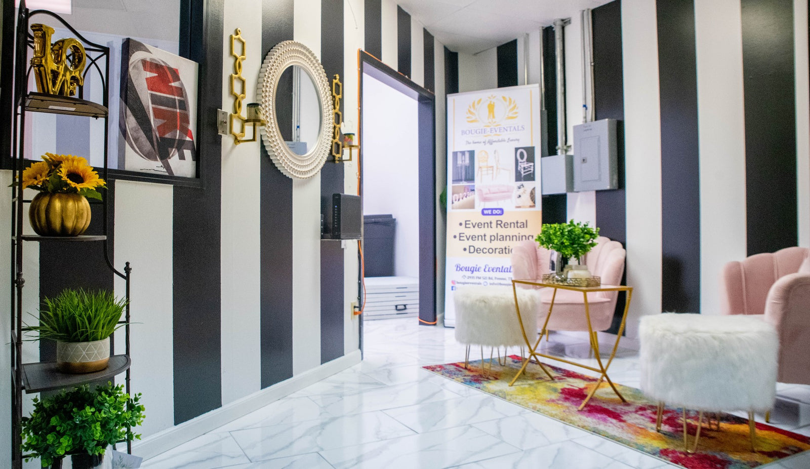 The Bougie studio is a fantastic community venue that works for so many uses and events. The hall has a large all white room, a lounge area and, a small kitchenette. It features a 2,500 SQFT of event space that can host up to 100 guests.
